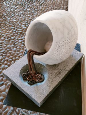 COBRA – Ambientazione obra di marmo di Saturnia. Il marmo di Saturnia é un marmo di origine vulcanica con bellissime striature bianche che si prestano molto alla rappresentazione del cobra. La pietra é durissima ma bellissima … marble, marmo, scultura, statua